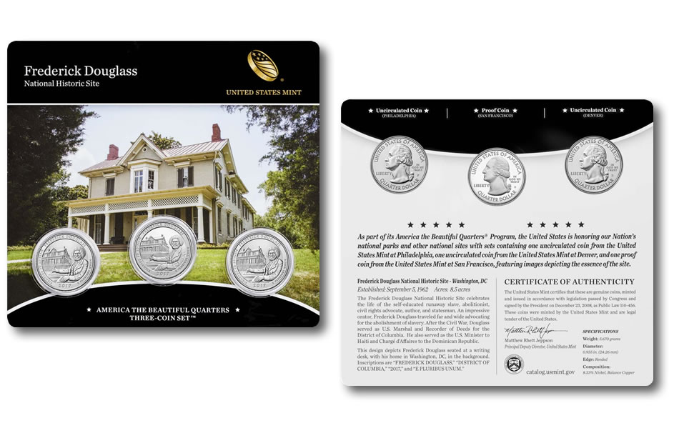 Today, April 24, the United States Mint began selling three-coin sets of Frederick Douglass quarters for $9.95. The coins commemorate the national historic site in Washington, DC.