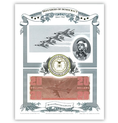 Bottom Center – Gold foil embossed, seal of the United States Air Force.