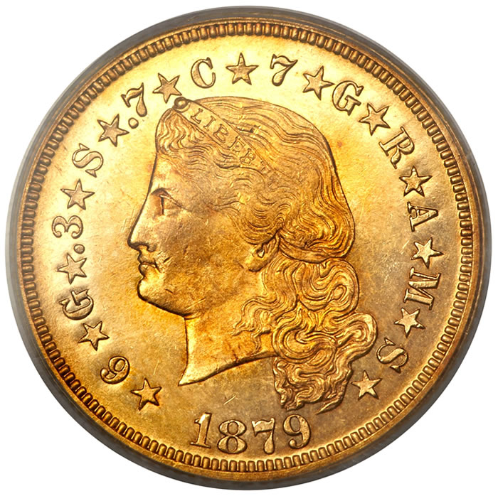 Also drawing attention was an 1879 Flowing Hair Stella, graded Poof-64 by PCGS, which sold for $165,675. Heritage describes the $4 gold piece as an "odd denomination struck in an early attempt to create an international currency," noting that they are technically patterns yet have enjoyed "great popularity" and selling prices.